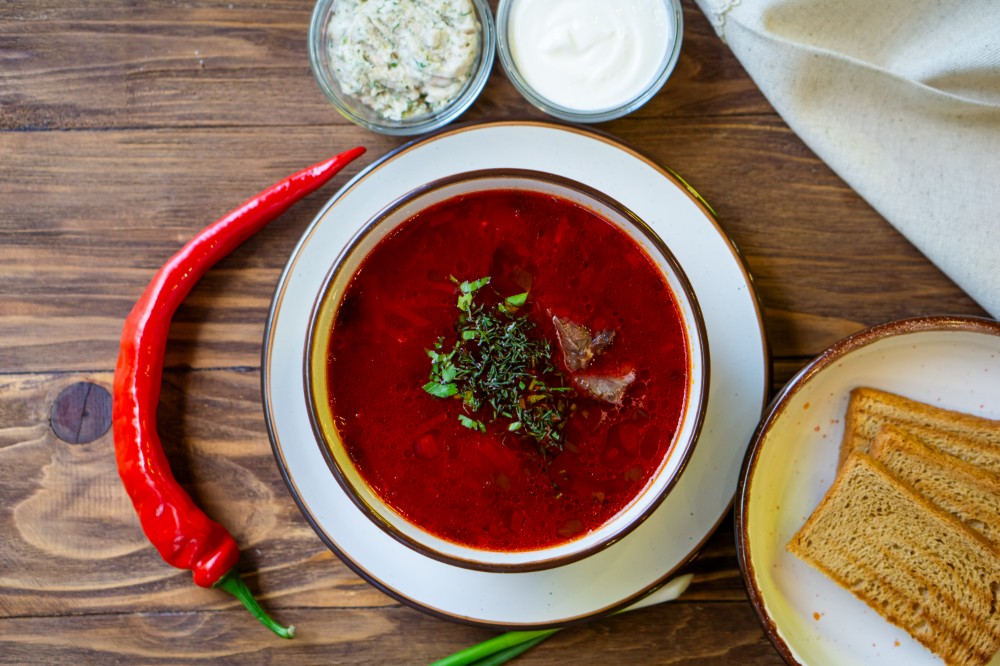 Борщ з яловичиною та сметанкою