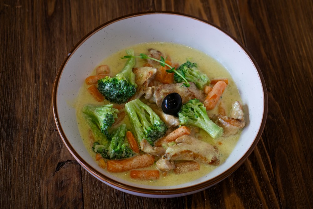 Курка з овочами в вершковому соусі