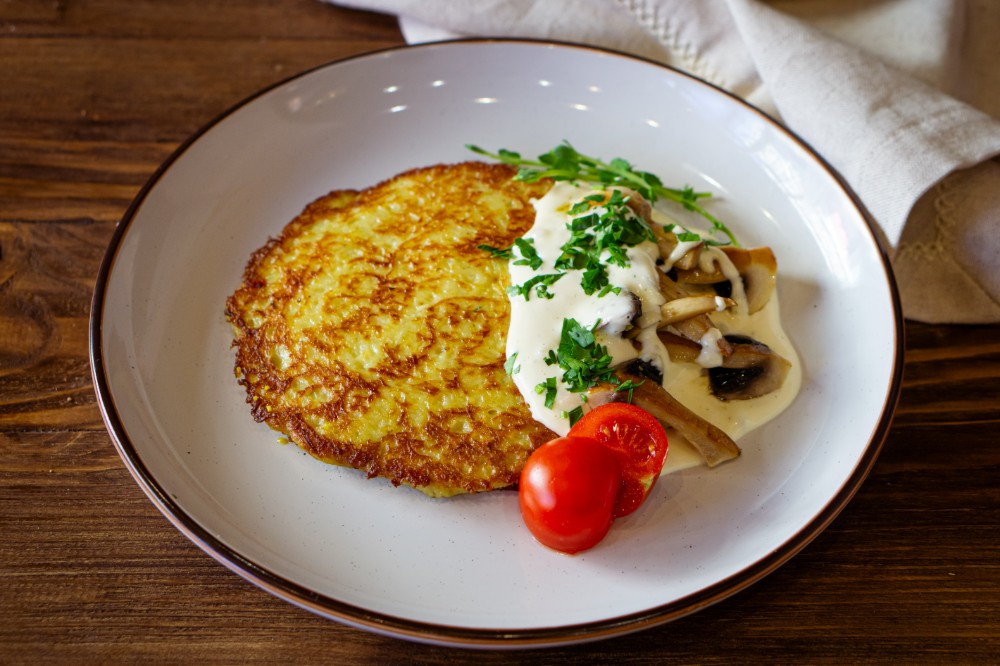 Деруни з моцарелою та фірмовим соусом