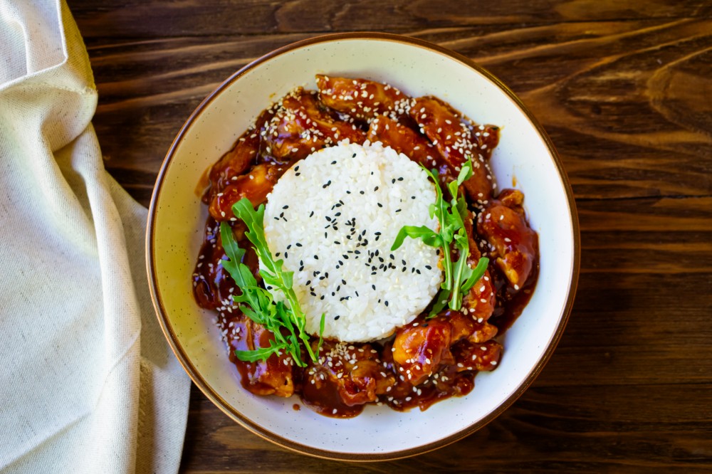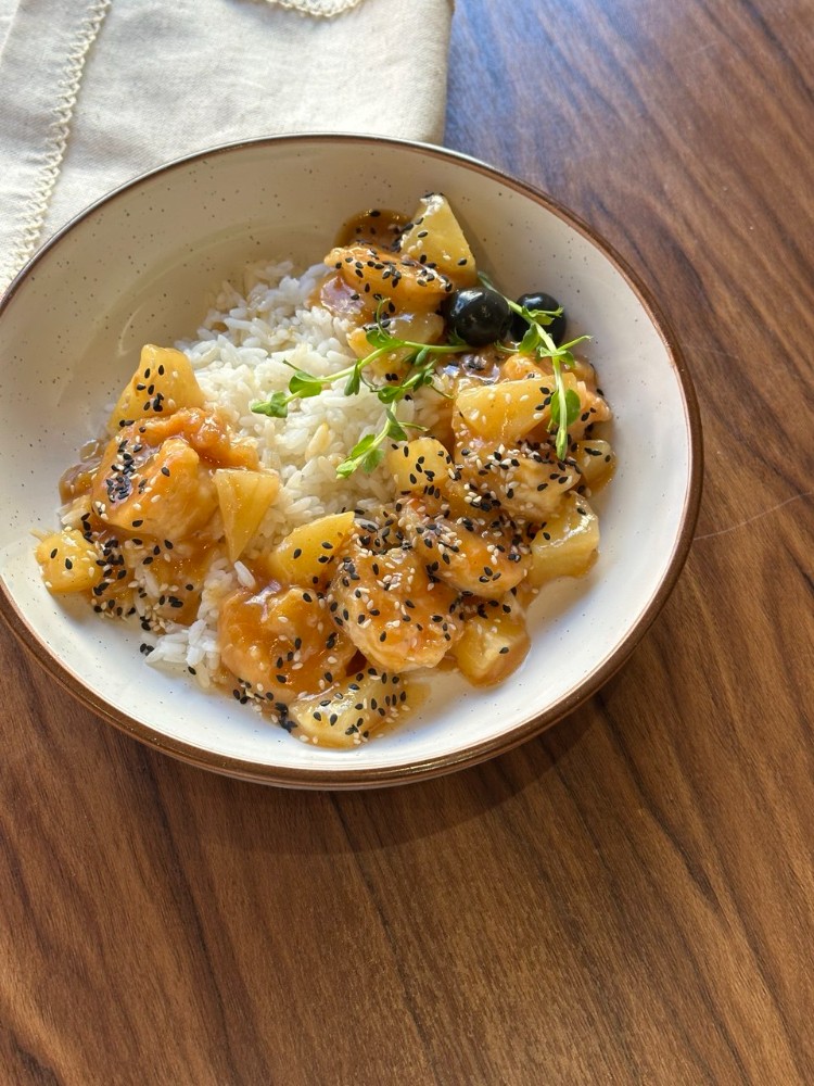 Курка в кисло-солодкому соусі з рисом