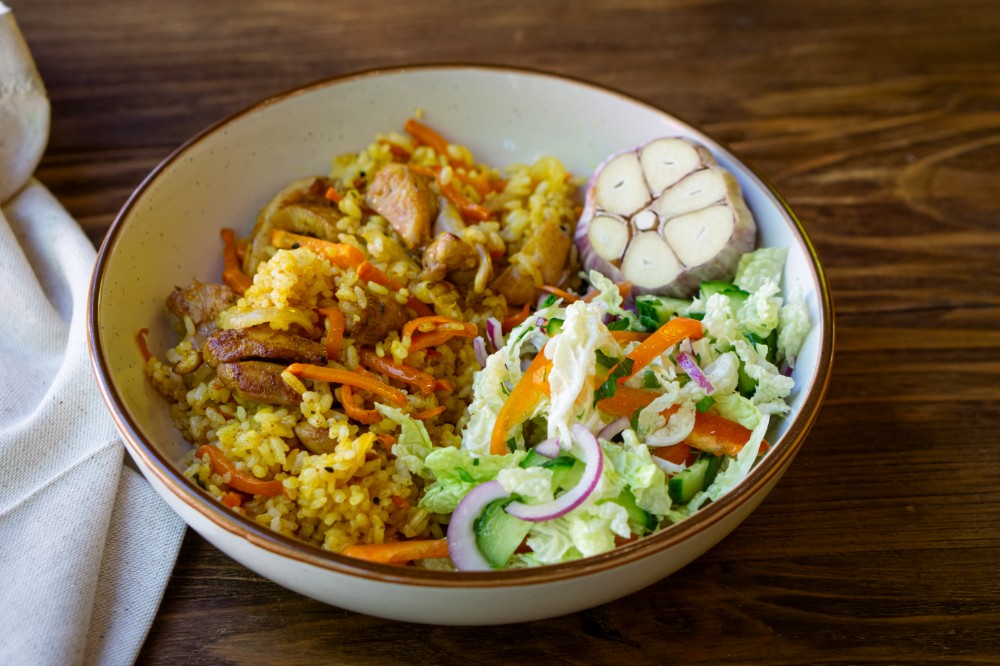 Плов з куркою та салатом