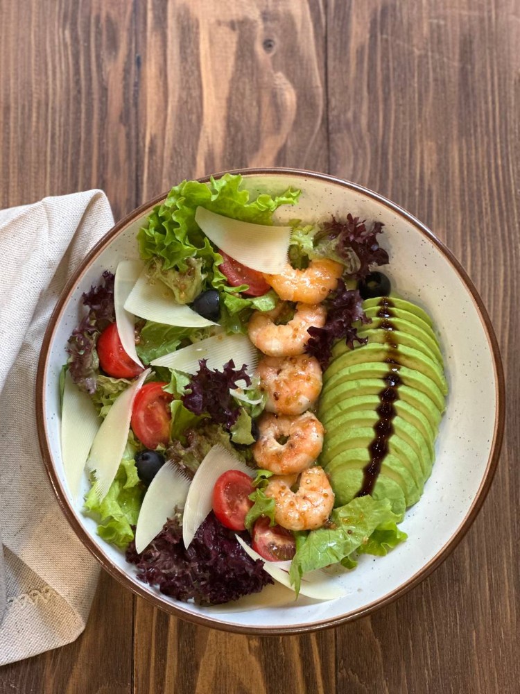 Салат з креветками, авокадо та цитрусово-медовим соусом